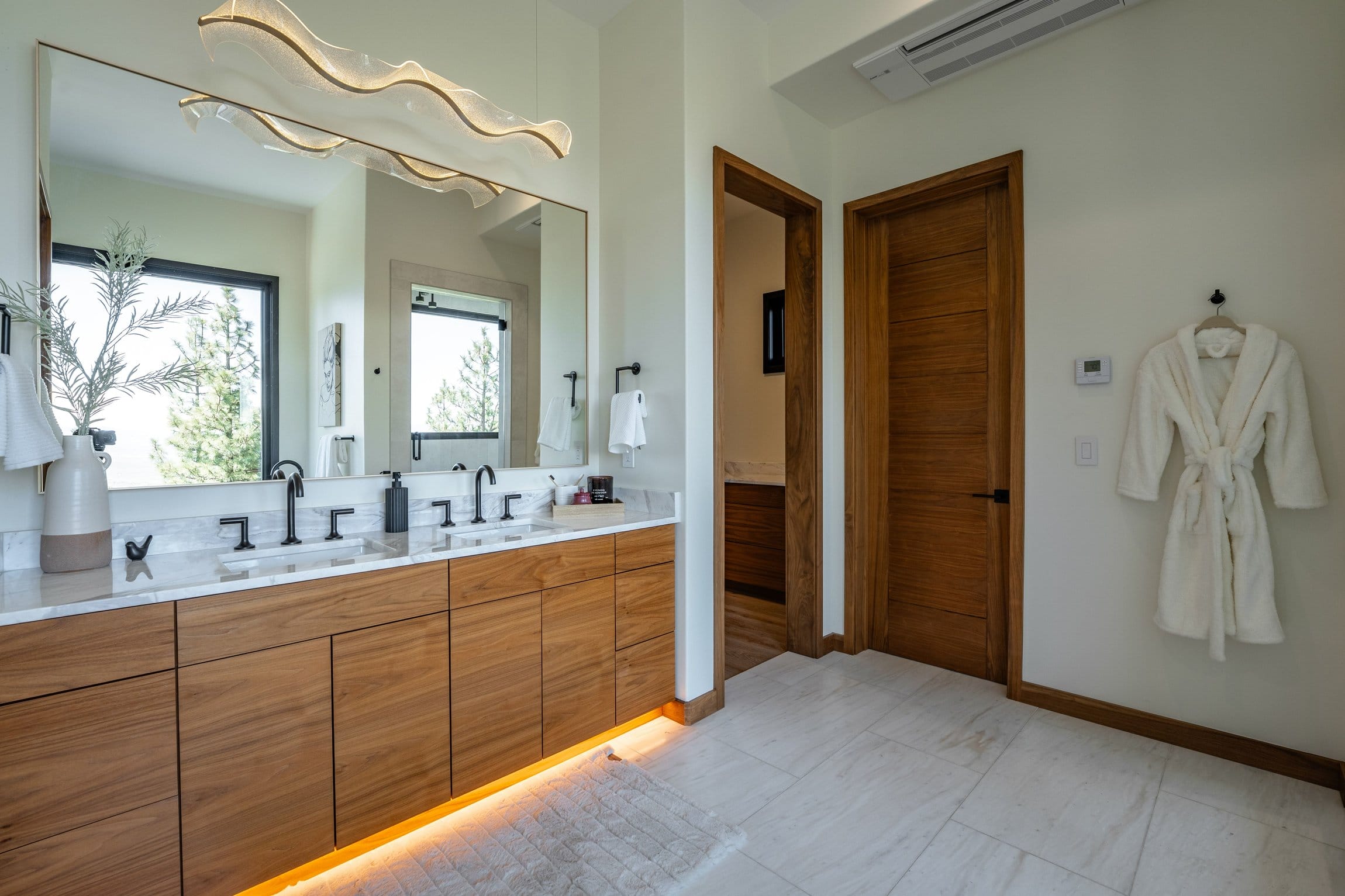The 3,587-square-foot mountain contemporary main residence is positioned to maximize its dramatic outlook, featuring an open floor plan and expansive walls of glass that bring the valley and sky indoors. Enjoy new construction, clean lines, abundant natural light, and a calm, intentional design that enhances the home’s connection to its surroundings. An oversized garage easily accommodates recreational vehicles, boats, or multiple cars.